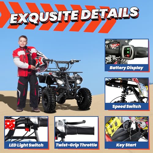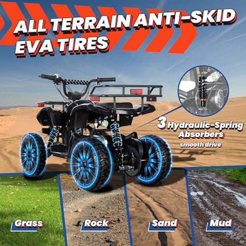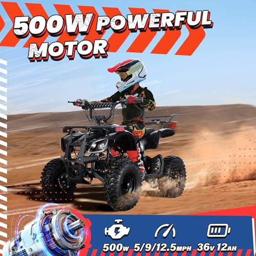 Specification: 36V Kids ATV XL Four Wheeler w/EVA Tire Ride on Toys for Big Kids 4-Wheeler Dirt Quad Electric ATV with 500W Powerful Motor Off-Road Electric Vehicles,Black