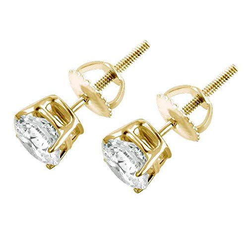 Specification: 3ct TDW Diamond Studs 14K Yellow Gold Lab Created Screw Back Earrings