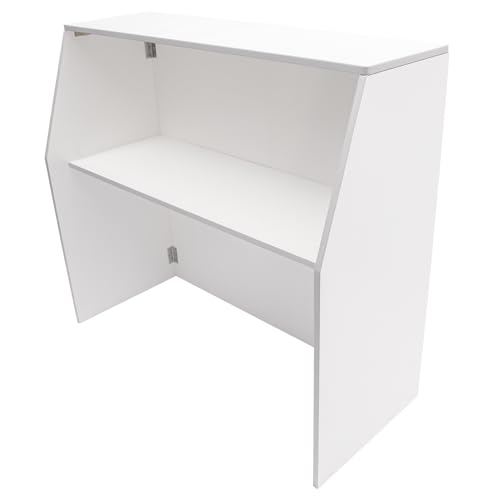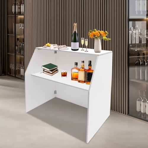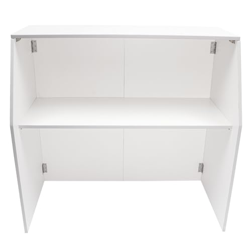 Specification: 4′ Folding Portable Event Bar with Top and Middle Shelves, Foldable Bartender Table Cabinet Station, Mobile Laminate Foldable Bar for Parties and Events (White)