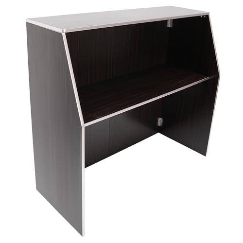 Specification: 4′ Folding Portable Event Bar with Top and Middle Shelves, Mobile Laminate Foldable Bar, Foldable Bartender Table Cabinet Station for Parties and Events and Home Use, Aluminum Edge + Laminate