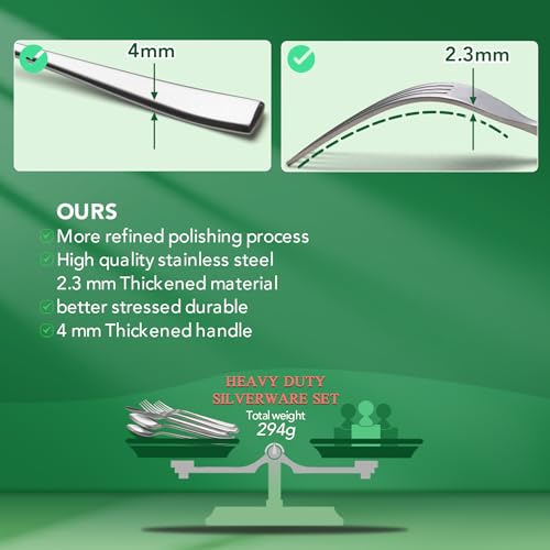 【Healthy and Premium Stainless Steel Flatware】This kitchen utensils set is made of high quality food grade stainless steel which is very health, safety, durable,rust-proof, corrosion resistant, BPA free, nickel-free and no metal aftertaste. Meanwhile, its sturdiness ensures that it will not bend easily providing you with long-term use. Easy clean and DISHWASHER SAFE.