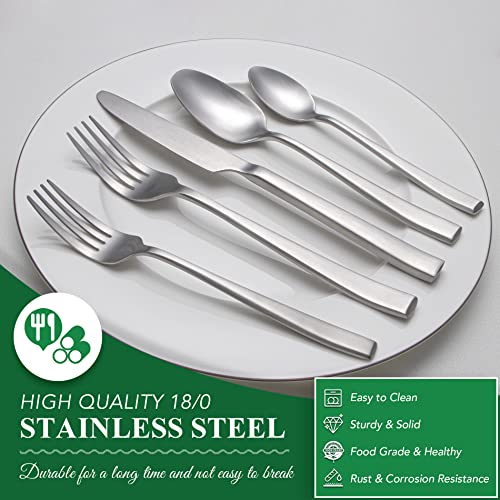 40 Piece Silverware Set Service for 8, EIUBUIE Premium Stainless Steel Cutlery Set, Matte Finish Flatware Sets Durable Solid, Modern Kitchen Tableware Eating Utensil Sets Include Spoons Forks Knives
