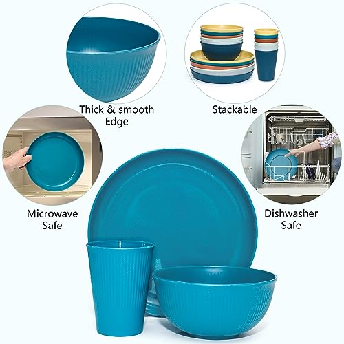 ECO-FRIENDLY PLATES, CUPS & BOWLS SETS : Made with natural organic wheat straw and food grade PP, this lightweight dinnerware set is 100% BPA free, gluten-free, non-toxic, odorless and environment friendly. Surprise your friends and family by giving them eco friendly, reusable dinnerware sets as a gift! Highly recommended plastic dishes set as an alternative to melamine dinnerware sets or plastic dinnerware set.
