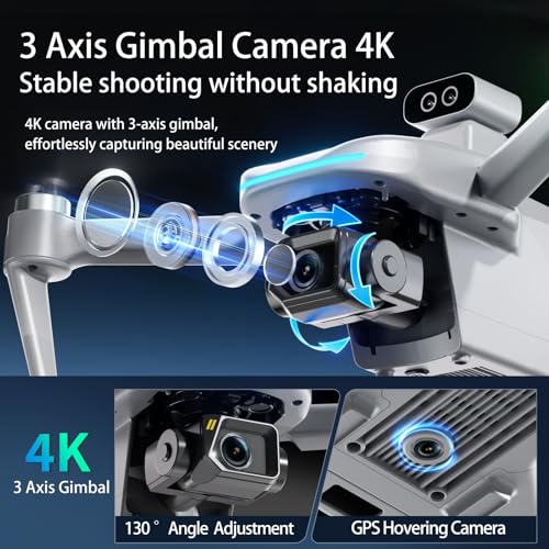 【4K Camera with 3 Axis Gimbal for Videos】: With 3-Axis Gimbal Camera 4K, this adults drone has a 130° FOV lens Plus 50x digital zoom, providing you with the 4K Pictures and Videos Recording with our provided SD card for day and night scenes