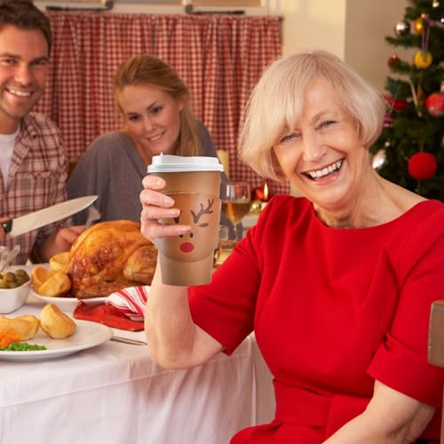 Christmas Design: our disposable to go coffee cups are printed in 4 different color, including white, red, green and brown, classic festive colors which will decorate your beverages well; the corrugated cup sleeves are designed in 4 different Christmas designs, like santa, elf, snowman and reindeer, ideal for holiday occasions and can give you an enjoyable use experience