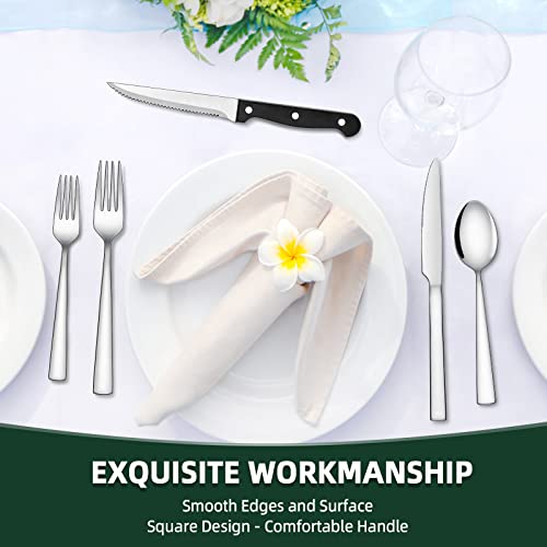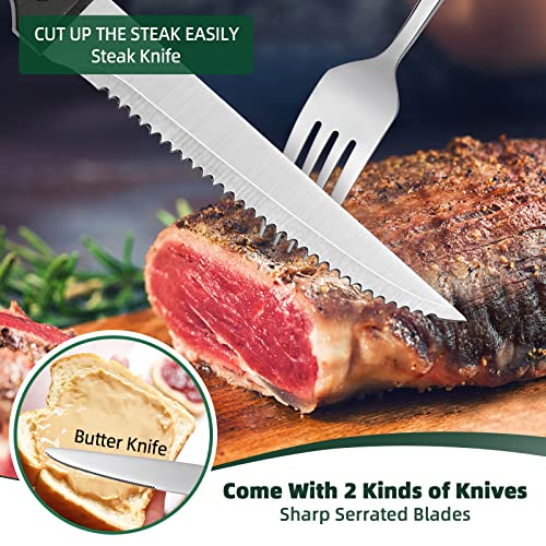 PREMIUM FOOD-GRADE STAINLESS STEEL: Cutlery set is made of premium 18/0 stainless steel, which is very sturdy and not easy to bend or break. At the same time, kitchen utensils set is rust-proof, corrosion-resistant, non-toxic, BPA-free, and has no metal aftertaste. Tableware set is also very safe and healthy for long-term use
