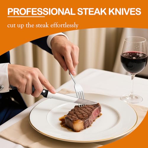 【PERFECT GIFT-READY SET】– Thoughtfully designed with weighted, comfortable handles with smooth edge and perfectly balanced steak knives. This tableware drawer set is a wonderful gift for housewarming, thanksgiving, christmas, birthday and more, or upgrading your kitchen essentials