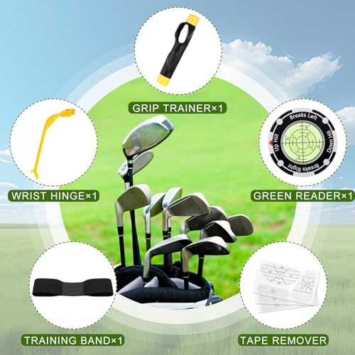 5 in 1 Golf Training Accessories Kit Golf Grip Trainer Swing Correcting Arm Band High Precision Green Reader, Training Wrist Hinge, High Resolution Impact Tape for Correct Position