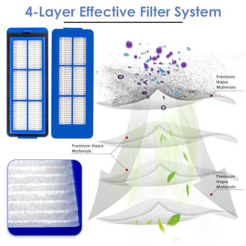 【Excellent Performance】 The HEPA filter of the latest version are with stronger capabilities to filter up to 99.9% of the dirt, pollen, small dust particles and substances. It is recommended to replace the filter every 1-2 months to effectively prevent dust from entering the engine and prolong the service life of the robot vacuum.