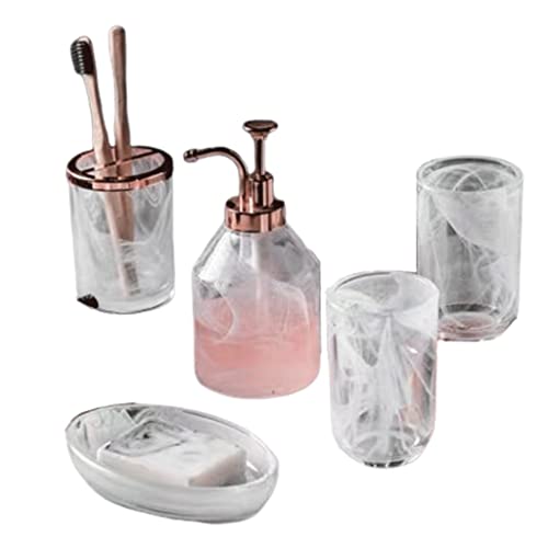 ?SPECIAL BATHROOM ACCESSORIES SET — Bathroom set includes Soap Dispenser,Soap dish,Tumbler,Toothbrush Holder,Both storage and fashion elements in home decoration.Perfect for storing your toiletries and keep your bathroom counter fully organized neatly.