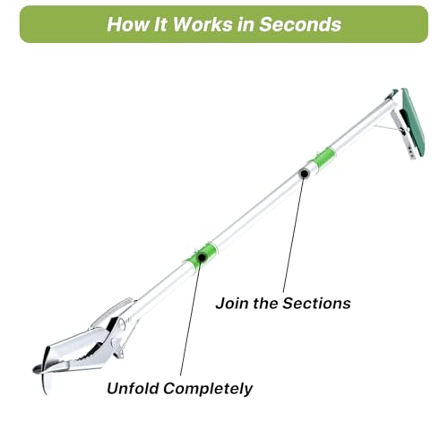Specification: 50″ Foldable Grabber Reacher Tool with Green Handle, Extra Long Lightweight Trash Pickup & Litter Picker, 3-Fold Stainless-Steel Reaching Aid for Home, Office & Garden Use