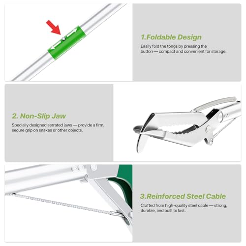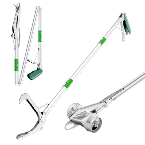 50″ Foldable Grabber Reacher Tool with Green Handle, Extra Long Lightweight Trash Pickup & Litter Picker, 3-Fold Stainless-Steel Reaching Aid for Home, Office & Garden Use