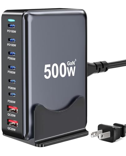 500W USB C Charger Block, 8-Port Fast USB Charging Station Dual PD 100W GaN Ⅲ Pro Charging Station For Multiple Devices, Laptop Charger Adapter Compatible with MacBook, DELL, iPad, iPhone, Samsung etc