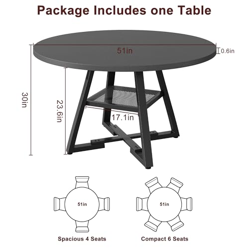 IDEAL for FAMILIES of 6: (Package Includes one Table) The 51-inch round dining table offers generous space for 6 people, providing it a space for kitchens and dining rooms. Whether for intimate family meals or lively social gatherings, it is the centerpiece for family gatherings.