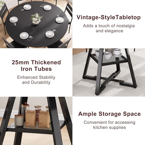 EXTRA LARGE STORAGE SPACE: A Thoughtfully designed storage shelf is for organizing tableware and kitchen essentials, keeping them easily within reach. It helps maintain a clean, clutter tabletop while providing convenient access to everything you need. Round dining table maximizes the usable area of the dining table, a 51-inch round dining table for 6, ideal for family meals and gatherings.