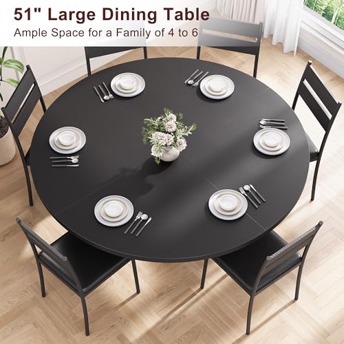 51” Round Dining Table for 6,Kitchen Dining Room Circle Dinner Pedestal Table,Space Saving Wood Kitchen & Dining Room Furniture (Black, 51In)