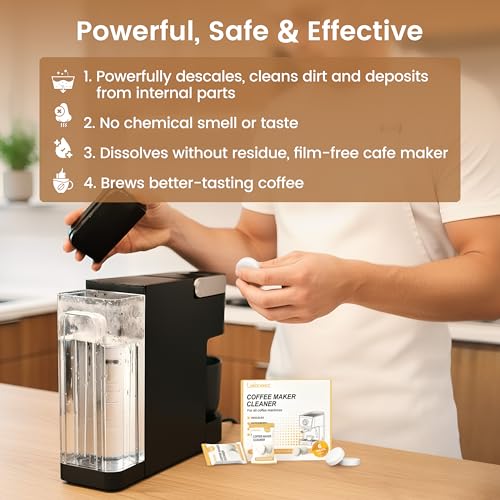 Specification: 6 Count Coffee Maker Cleaner & Descaler Tablets, Effective Cleaning Coffee Pot Cleaner Tablets, Compatible with Nespresso, Breville, Keurig, Ninja, Delonghi, Miele