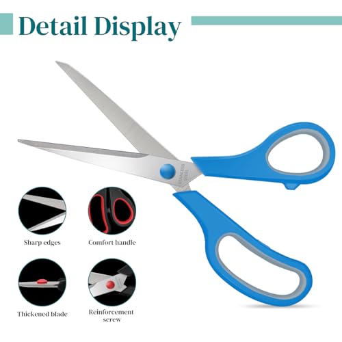 Suitable Size: The all purpose scissors are 8 inches in size, and larger sizes are more convenient to use, meeting your different needs. Colorful scissors are perfect for daily use or as gifts