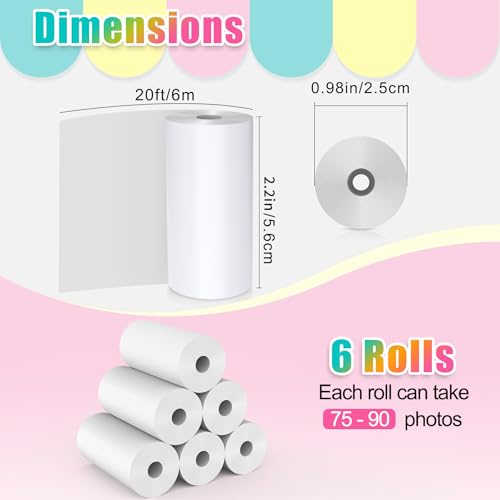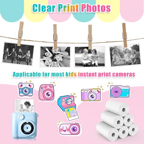 [6 Rolls Print Paper]: Include 6 rolls instant camera refill print paper.Each roll of paper is about 2.2 in × 20 ft and can print about 75-90 photos.Enough quantity for kids to replace and use for a long time