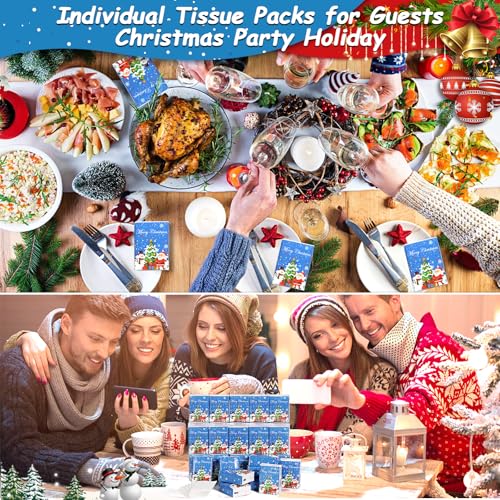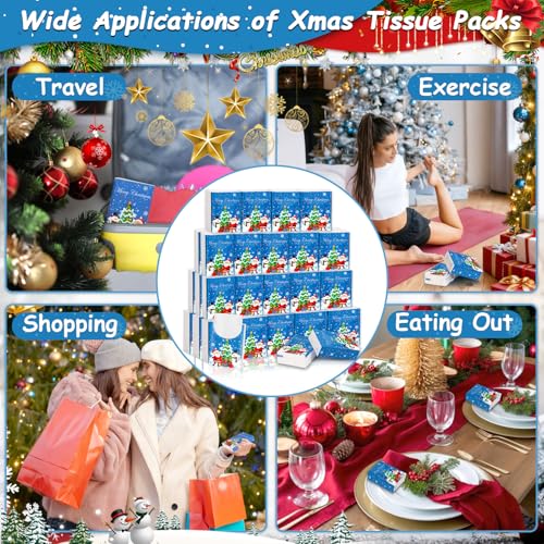 【Versatile Merry Xmas Tissue Packs】: The christmas small tissues pocket packs are suitable for travelling, shopping, restaurant, wedding, ceremony, holiday party and more. Small size allows them to fit easily into any bag, pocket, or purse, ready for noses, hands, mouths, watery eyes, sweat or quick cleanups