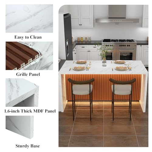 ⚜️【𝐌𝐨𝐝𝐞𝐫𝐧 𝐚𝐧𝐝 𝐄𝐥𝐞𝐠𝐚𝐧𝐭 𝐃𝐞𝐬𝐢𝐠𝐧】Marble stripes paired with a bottom grille design showcase luxury and elegance, satisfying your vanity,If you are looking everywhere and couldn’t find the appropriate style, you can try choosing this artificial marble island table for kitchen. its a beautiful set and definitely a converation piece and focal point of any space in the home. {If you receive a product with a few very thin boards, they are the protective boards we package to prevent product accessories from being damaged due to transportation compression, maximizing the protection of the product’s integrity}