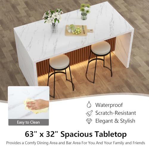 63″ Large Imitation Marble Dining Table for 4-6 People(Patent Pending),Island Table with LED Lights, Mordern Marble Stripes Kitchen Dining Table with Grille design for Dining Room,Living Room (White)