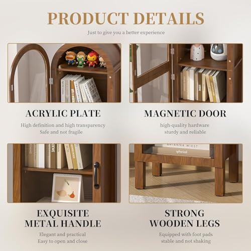Simple and Beautiful Design: The display cabinet has a charming arched top and bright acrylic glass door, allowing you to clearly see your favorite antiques, books and toys, unique and elegant, suitable for any home style, perfectly blending with your elegant home decoration, adding highlights to your room