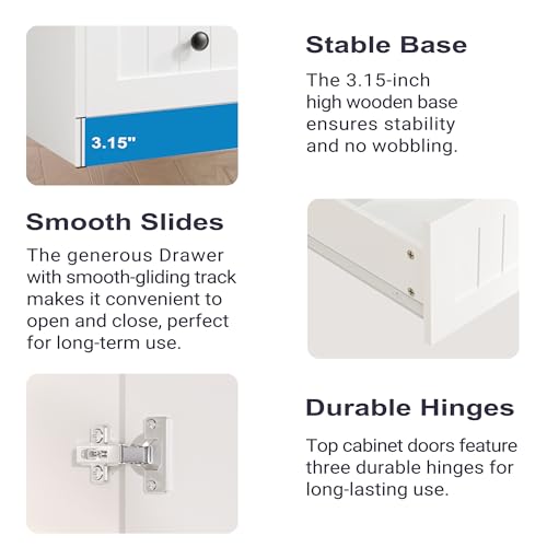 【Rustic Elegance Design】 – Featuring striped panels and rounded knobs, this farmhouse storage cabinet boasts a clean and stylish appearance. Inspired by rustic design, its upgraded and simplified aesthetic makes it versatile enough to blend seamlessly with various home styles. Beyond its primary function as a kitchen pantry cabinet, it can effortlessly transition into a bathroom storage solution. With its farmhouse charming look, it’s sure to refresh and enhance every corner of your home