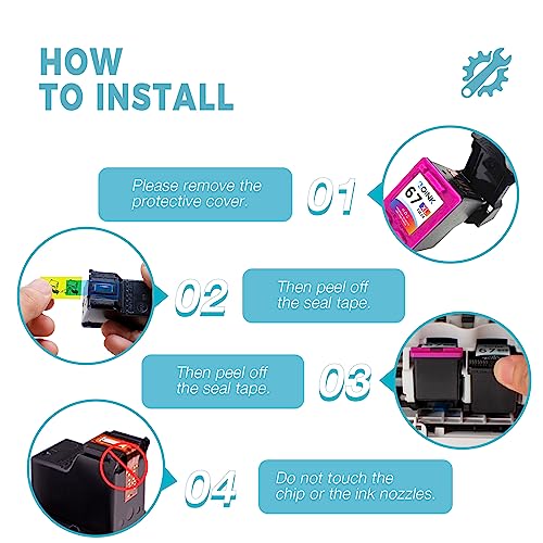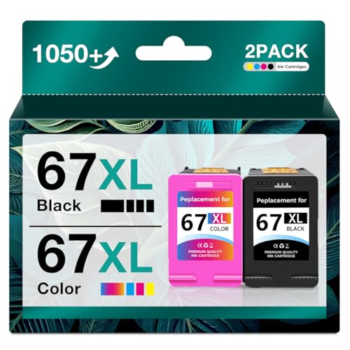 Contents: NOINK 67XL Ink Cartridge Combo Pack Includes 2 Pack of Remanufactured Ink Cartridges Replacement for HP 67XL 67 XL High Yield (1 Black, 1 Tri-color)