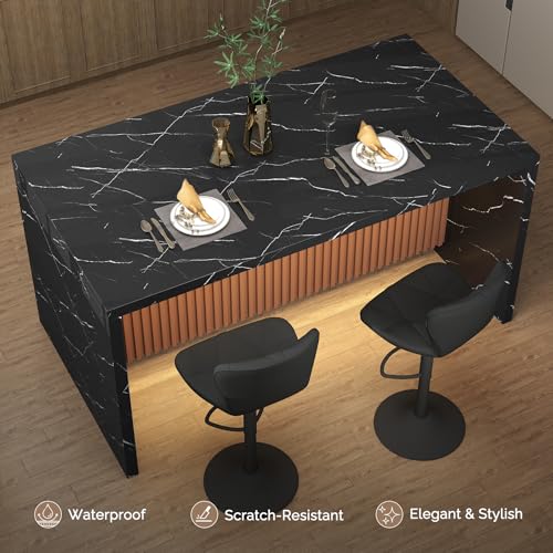 Specification: 67″ Large Modern Rectangle Dining Table for 4-6 People, Imitation Marble Island Table with LED Lights for Kitchen,Dining Room, Bar, Office, Living Room (Black)