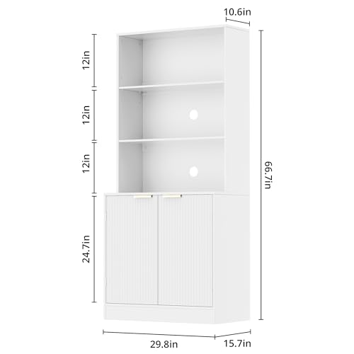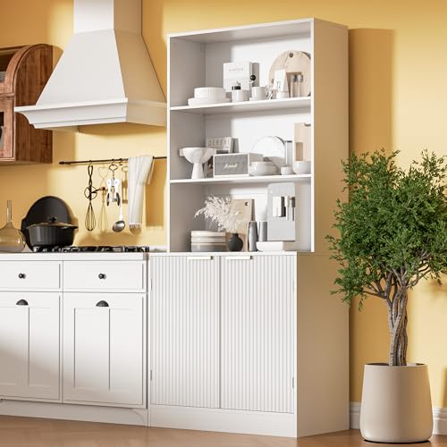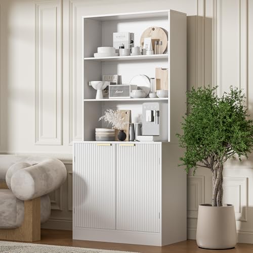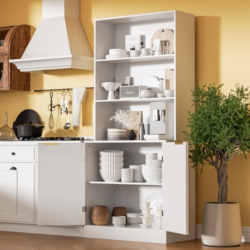 Specification: 67″ Pantry Cabinet with 2 Doors, 3-Tier Modern Hutch with Adjustable Shelves, Freestanding Larder Cupboard, Kitchen Pantry Storage Cabinet for Kitchen, Dining Room, Bathroom, White