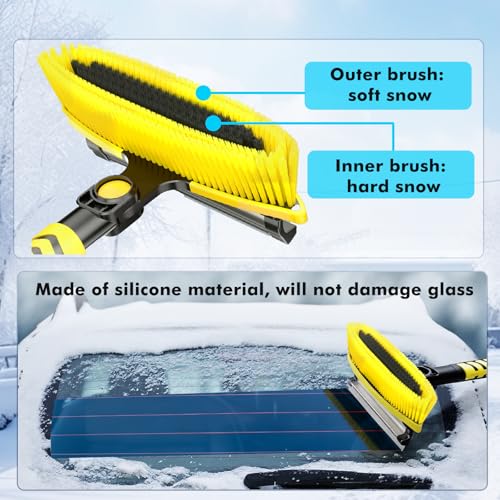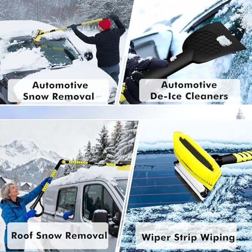Specification: 7 in 1 Snow Shovel & Snow Brush Kit with Ice Scrapers for Car Windshield,62.2” Extendable & Bendable Thicken Aluminum Tube for Easy Roof Cleaning,180° Pivoting Brush Head & EVA Grip,Yellow