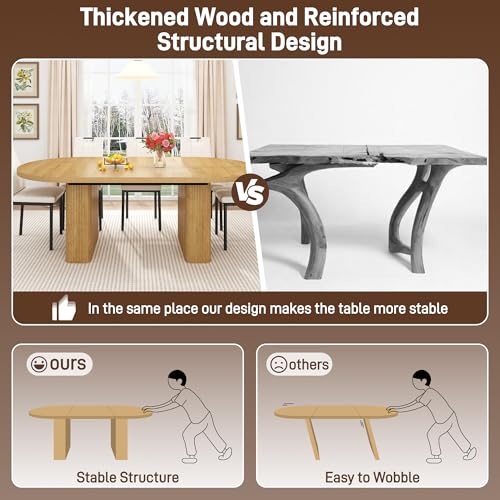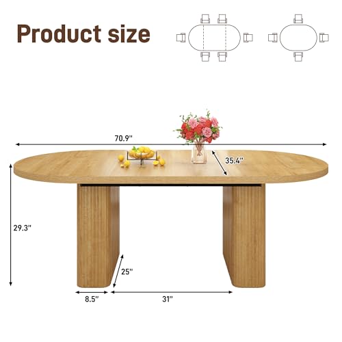 Specification: 70.8 in Dining Table for 4 5 6 | Modern Natural Rectangular Kitchen Table W/Waterproof Wood Tabletop,Farmhouse Long Dining Room Tables W/Foot Pads&Wood Strip Base for Kitchen Living Room