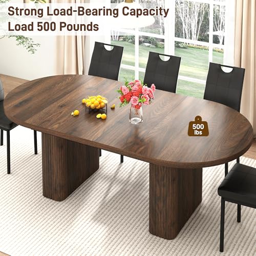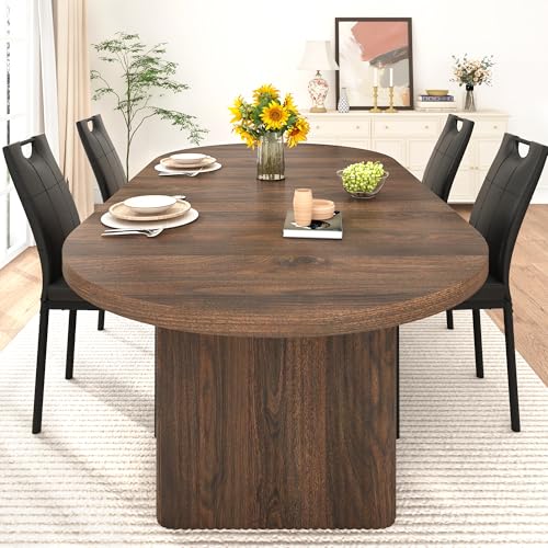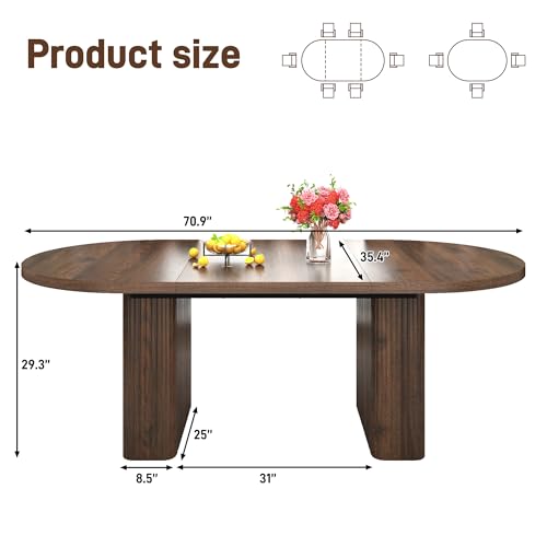 Specification: 70.8 in Dining Table for 4 5 6 | Modern Walnut Rectangular Kitchen Table W/Waterproof Wood Tabletop,Farmhouse Long Dining Room Tables W/Foot Pads&Wood Strip Base for Kitchen Living Room