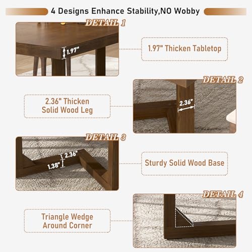 Real Solid Wood, Elegant Grain: Our solid wood dining table is made of FSC certified wood.This farmhouse real wood dining table features a solid wood tabletop and solid wood legs for a elegant look; Solid wood kitchen table preserve natural wood grains to create a unique dining atmosphere and enhance your home’s style.