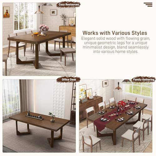 Specification: 71 Inch Farmhouse Dining Table, Solid Wood Rustic Kitchen Table, Large Wooden Rectangular Dinner Table for Dining Room, Home Office, Living Room Furniture, Easy Assembly, Walnut Wirebrush