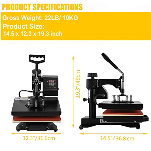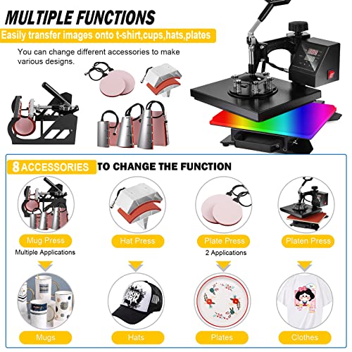 Specification: 8 in 1 Heat Press Machine, Swing Away T Shirt Pressing Machine Multifunction, Heat Press 12×10 inch Transfer Machine Sublimation Combo for T-Shirt Hat Cap Mug Plate Cap