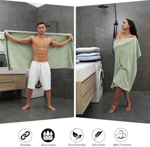 Specification: 8-Piece Bath Towel Set, 2 Extra Large Bath Towel Sheets, 2 Hand Towels and 4 Washcloths – Highly Absorbent Quick Dry Polyester,Ultra Soft Towel Set for Bathroom, Waffle Weave Design, Pack of 8, Green