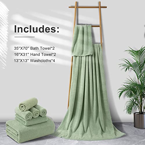 8-Piece Bath Towel Set, 2 Extra Large Bath Towel Sheets, 2 Hand Towels and 4 Washcloths – Highly Absorbent Quick Dry Polyester,Ultra Soft Towel Set for Bathroom, Waffle Weave Design, Pack of 8, Green