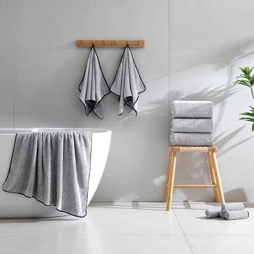8-Piece Premium Towel Set for Bathroom|2 Oversized Large Bath Sheet 35”x70”,2 Hand Towels,4 Washcloths|Soft Cozy Absorbent Fast Dry Polyester Shower Towel Set for Hotel Bathroom Essentials,Black White