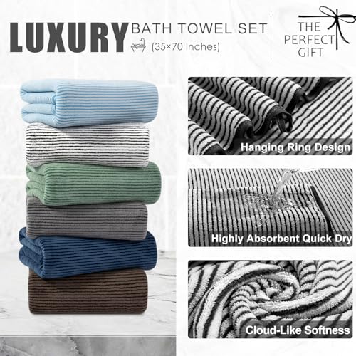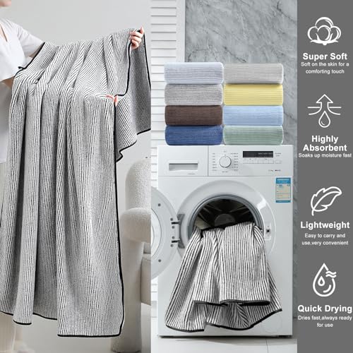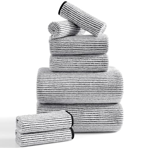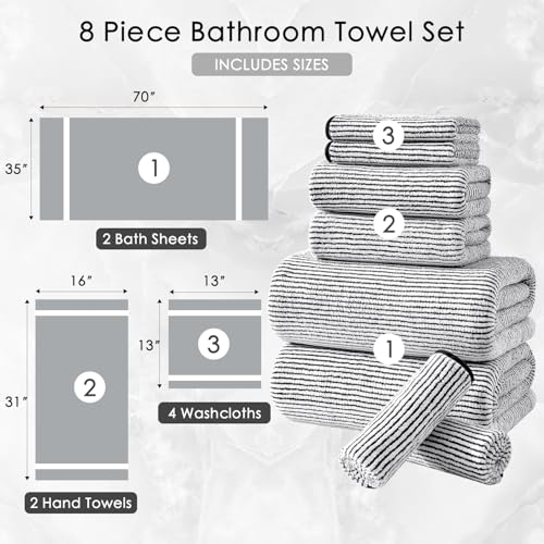 Specification: 8-Piece Premium Towel Set for Bathroom|2 Oversized Large Bath Sheet 35”x70”,2 Hand Towels,4 Washcloths|Soft Cozy Absorbent Fast Dry Polyester Shower Towel Set for Hotel Bathroom Essentials,Black White