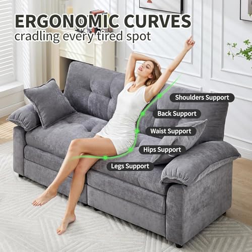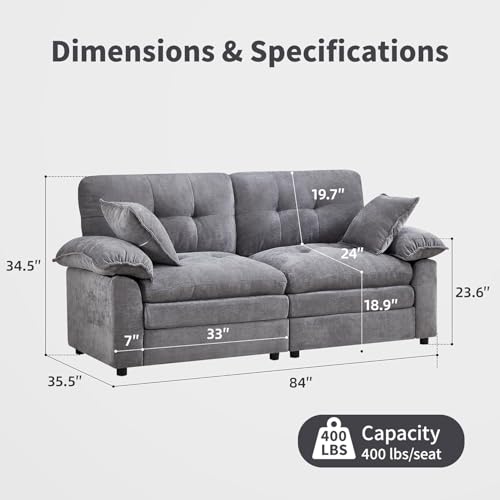 Specification: 84″ Loveseat Sofa, Modern Couches for Living Room,Double-Layer Cushion Cloud Couch with Deep Seat,Super Comfy Chenille Sofas,Sturdy Frame, Easy Assembly for Bedroom, Apartment, Office, Dark Grey