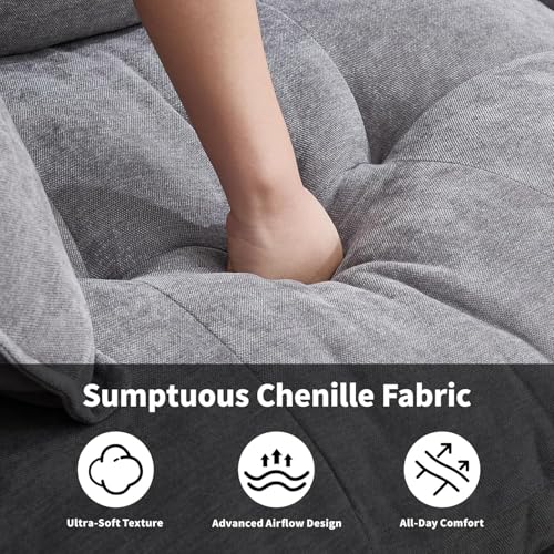 【PREMIUM CHENILLE FABRIC & DURABLE DESIGN】Wrapped in luxurious chenille fabric, this sofa offers softness + stain resistance for everyday use. The solid frame and 800lbs weight capacity ensure long-lasting stability, Extra-Wide Padded Armrests ,Contoured to perfectly support your arms for ultimate relaxation whether lounging sideways for movie nights or leaning back for quick naps.
