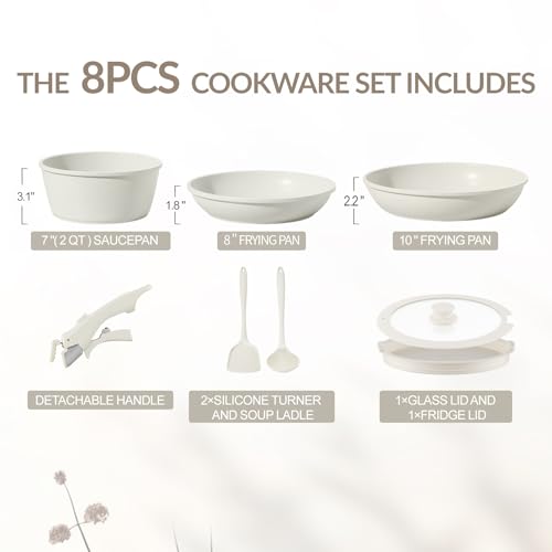 Specification: 8PCS Ceramic Cookware,Nonstick Ceramic Pan, Removable Handle Pots and Pans Set, Stackable Pan Set, Nonstick Pots and Pans Set Non Stick pot for Home,RV