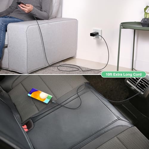Adaptive Fast Charging Wall Charger with USB C Cable 10Ft, Excgood Fast Charger Power Adapter USB Type C Cable Fast Charging Compatible with Galaxy S25 S24 S23 S22 S21 S8 S9 S10 A15 A03s Android Phone