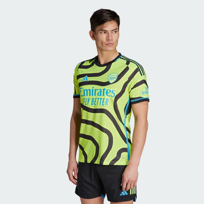 There’s no place like home, but Gooners will travel far and wide to follow the Arsenal to glory – and whether it’s a pilgrimage to the Emirates Stadium or an away overseas, match days are as much about the journey as they are about the beautiful game. Inspired by the passion of traveling supporters, the Arsenal 23/24 Away Authentic Jersey is loosely inspired by a map of the teams’ borough, with a fluid line design reflecting the flow in and out of N7 when Arsenal fans are on the march. A fresh, shock-yellow color completes the update, alongside light blue accents. The iconic, lightweight crest and HEAT.RDY fabric – maximizing airflow so you can feel cool – help to ensure the top stays pro-player ready.