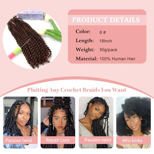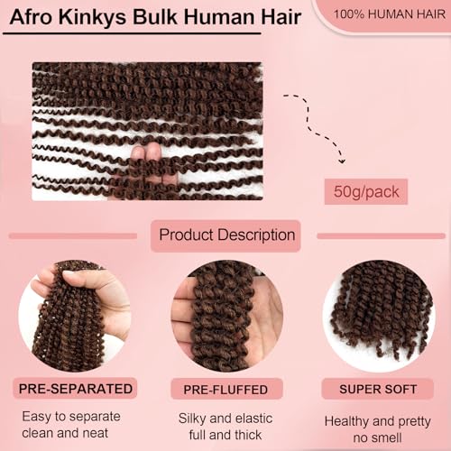 Specification: Afro Kinkys Bulk Human Hair 18 Inch Pre Separated Springy Afro Twist Extensions Human Hair Color 6# Crochet Braids Bundles Marley Twists Braiding Hair for Women