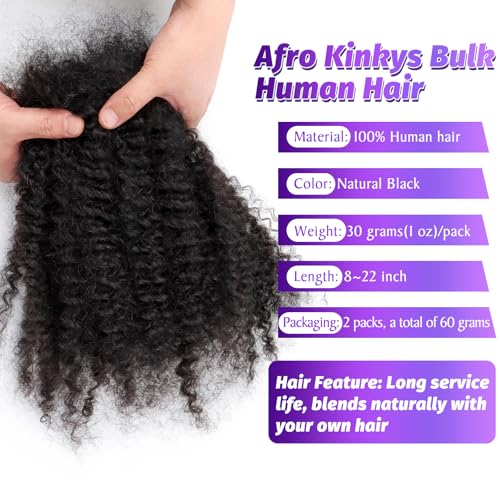Specification: Afro Kinkys Bulk Human Hair 22 Inch 2 Packs 60g Afro Kinkys Curly Bulk Hair for Making Micro Locs, Twists, Braids, Dreadlocks Extensions, Locs Repair