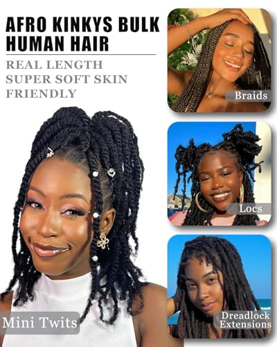 Specification: Afro Kinkys Bulk Human Hair 4 Bundles 20 Inch Afro Kinky-Curly Human Hair Bulk for Twist Dreadlock Extensions Locs Repair Soft 4C Curly for Braids Burgundy
