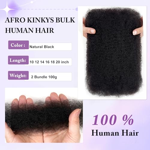 Afro Kinkys Bulk Human Hair for Braiding 14 Inch 100g Afro Kinky-curly Human Bulk for Twist Braids 4C Kinkycurly Bundles for Mini Twists or Micro Locs Extension Soft Cuban Kinky Twist Braiding Hair